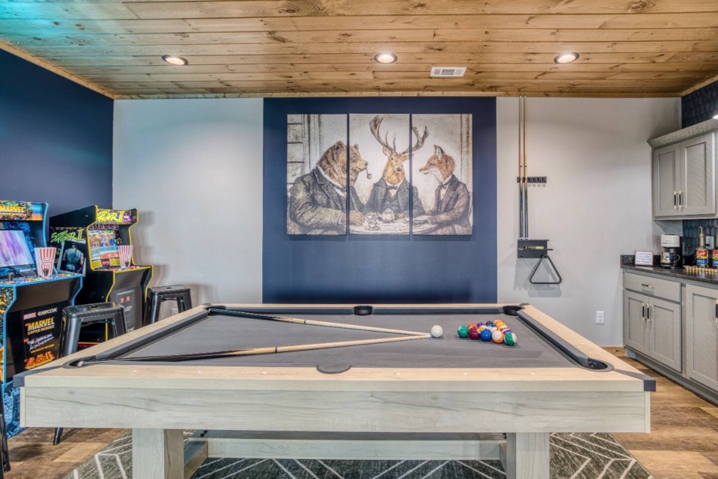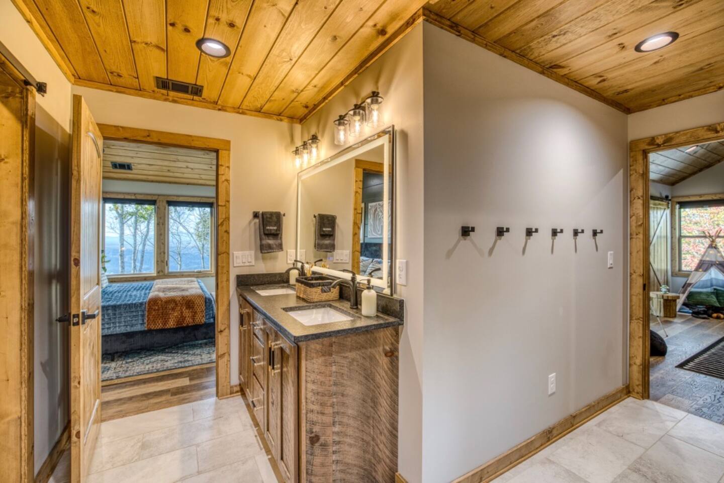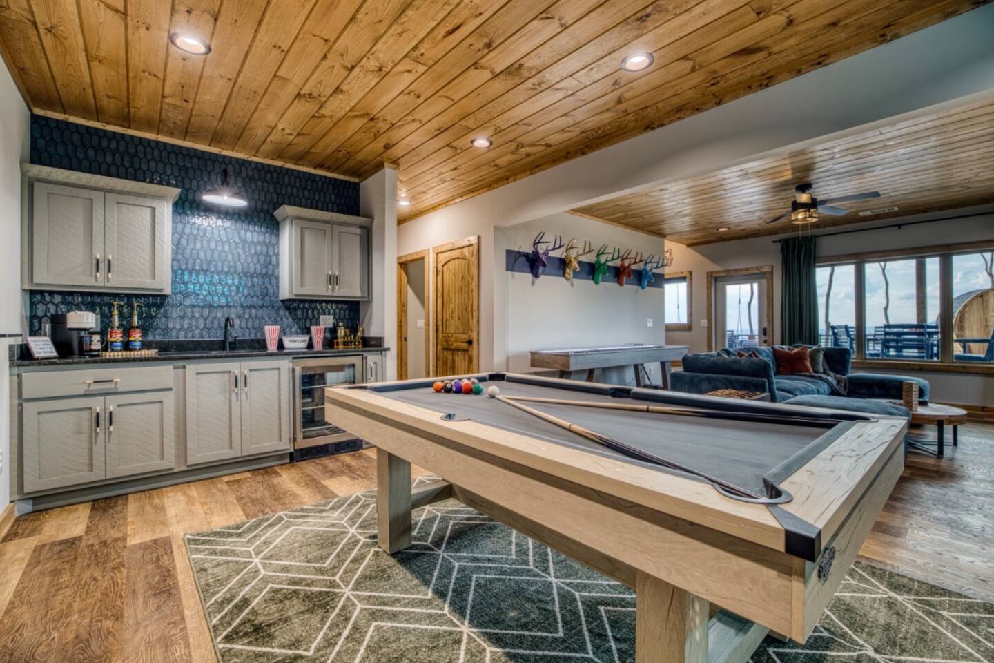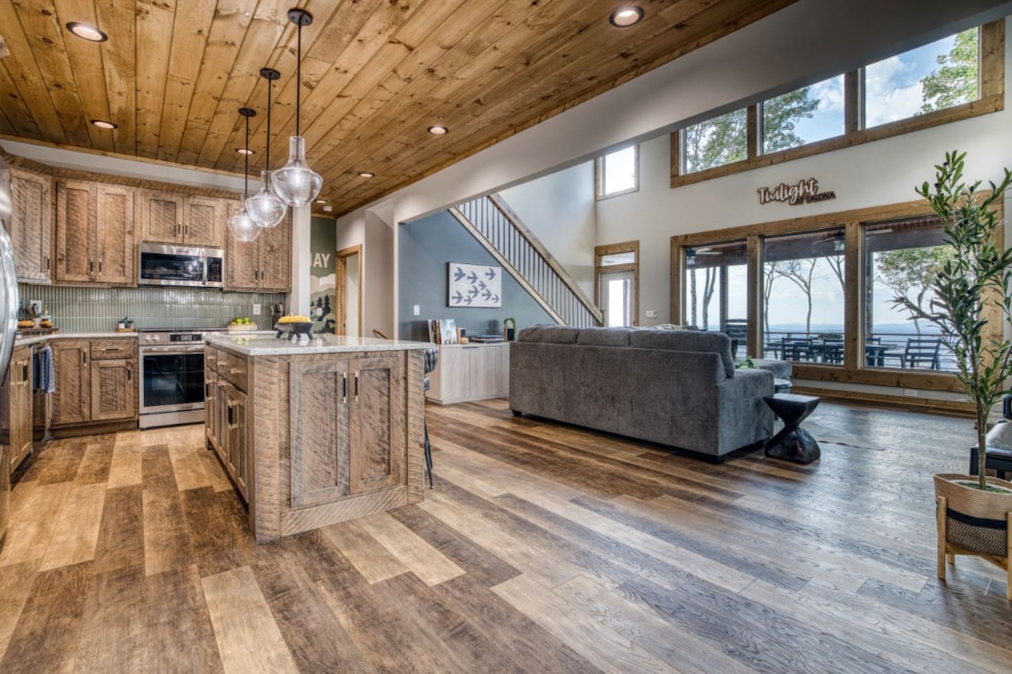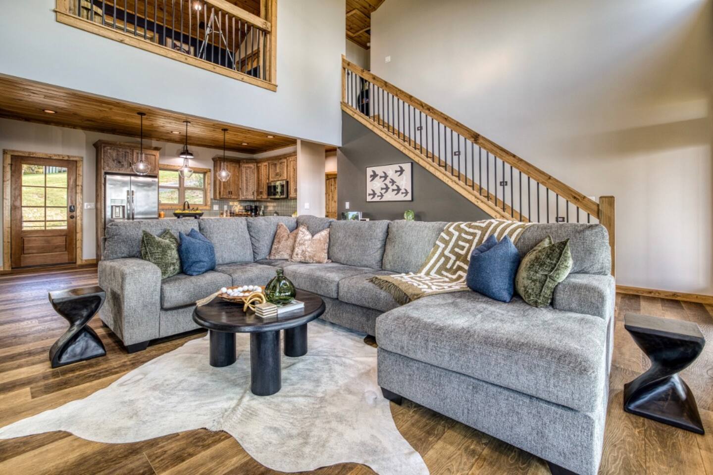Twilight at Talona is thoughtfully designed for comfort, privacy, and relaxed mountain living. The cabin features spacious gathering areas balanced with quiet retreats, making it ideal for families and groups traveling together. Inside, open living spaces invite connection, while plush king and queen beds throughout the home ensure restful nights after a day of exploring or unwinding. A dedicated game room adds an element of fun, and multiple living areas allow everyone to spread out comfortably. The layout offers a sense of separation and flow, so guests can enjoy time together without feeling crowded. Every space is designed to feel warm, inviting, and intentional—perfect for slowing down and settling in.