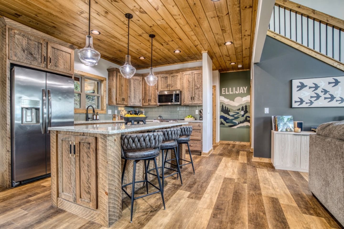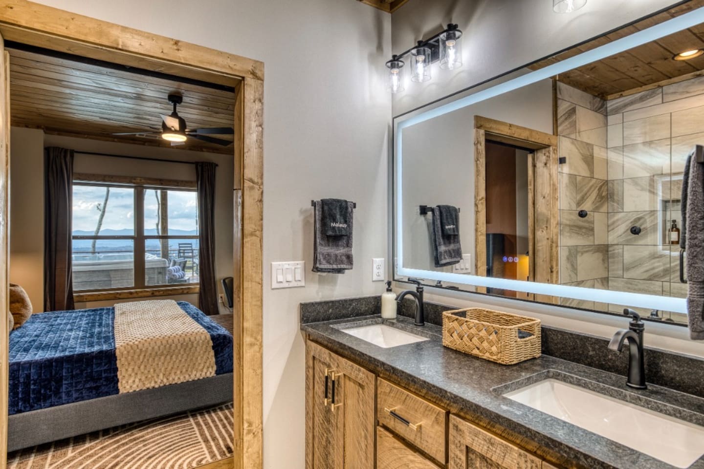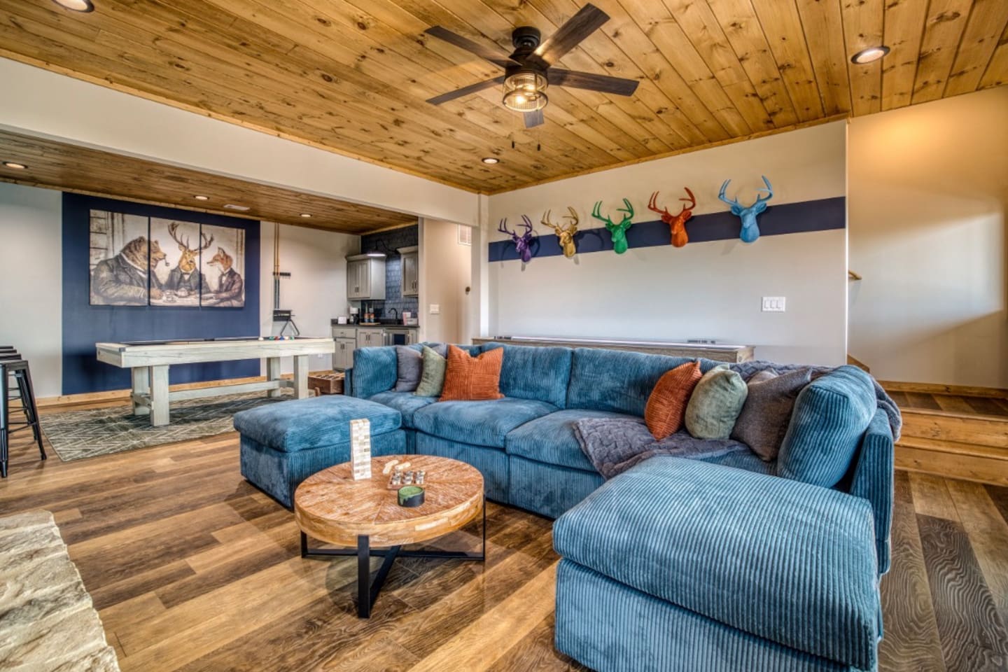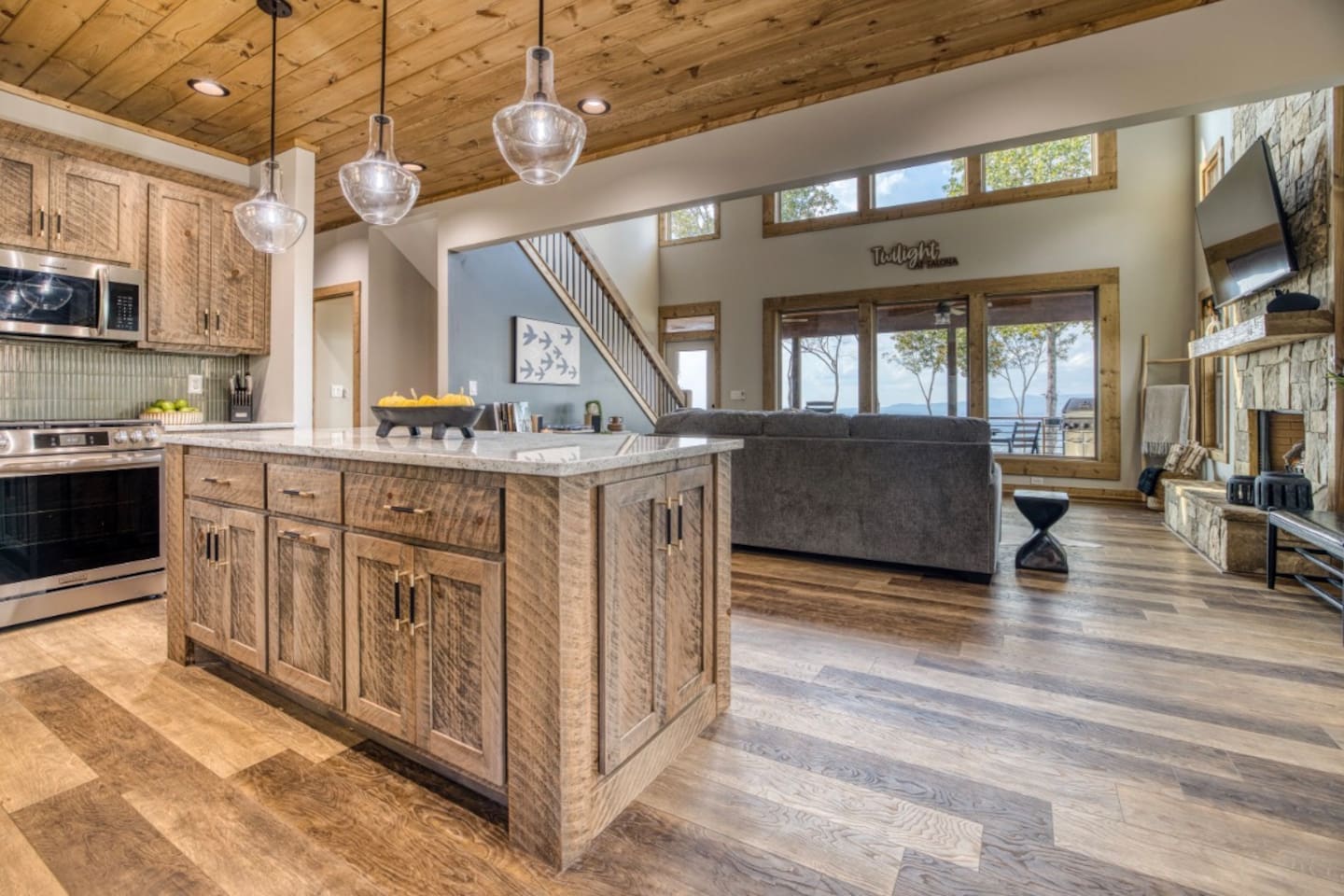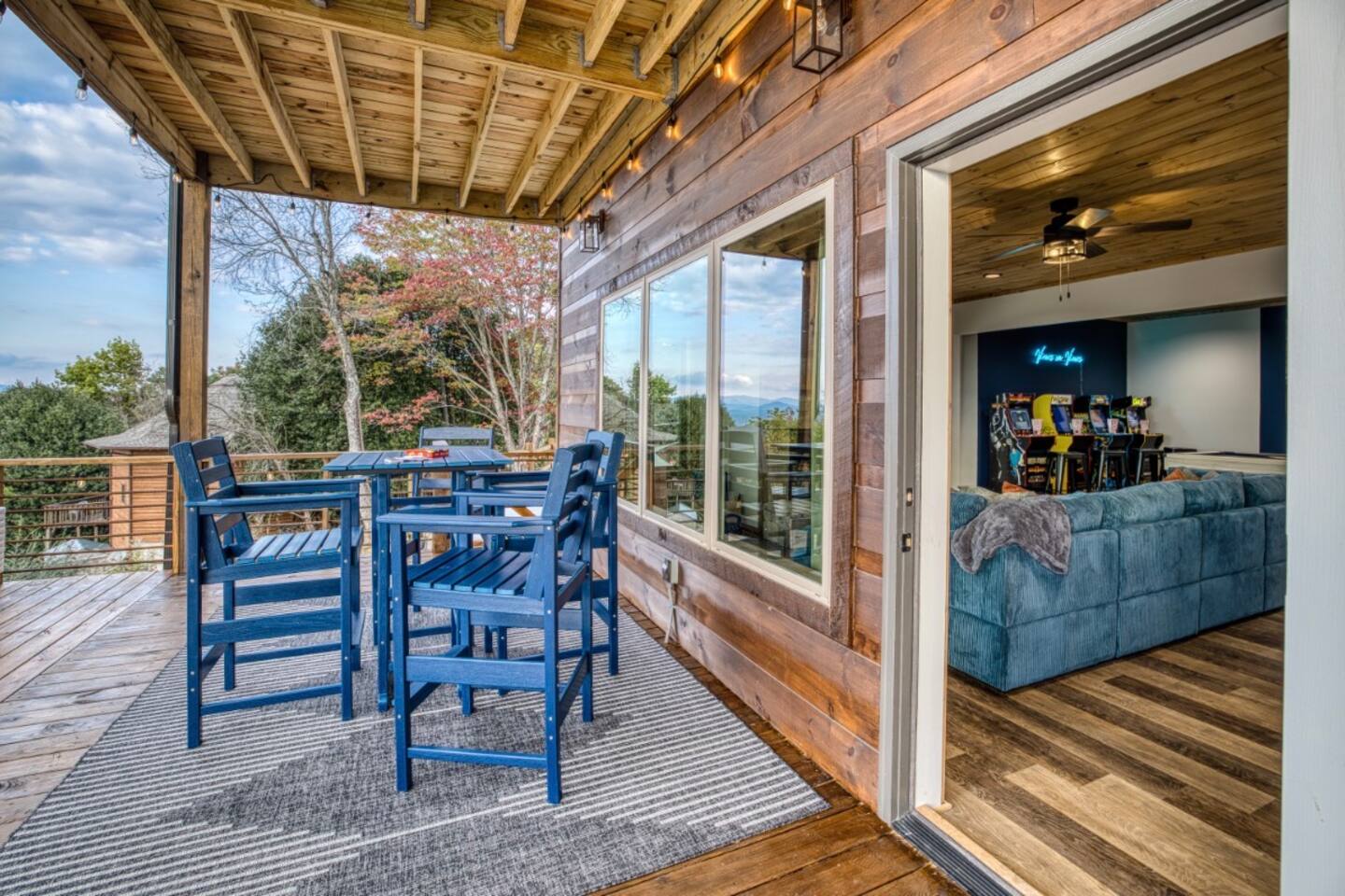 Twilight at Talona is thoughtfully designed for comfort, privacy, and relaxed mountain living. The cabin features spacious gathering areas balanced with quiet retreats, making it ideal for families and groups traveling together. Inside, open living spaces invite connection, while plush king and queen beds throughout the home ensure restful nights after a day of exploring or unwinding. A dedicated game room adds an element of fun, and multiple living areas allow everyone to spread out comfortably. The layout offers a sense of separation and flow, so guests can enjoy time together without feeling crowded. Every space is designed to feel warm, inviting, and intentional—perfect for slowing down and settling in.