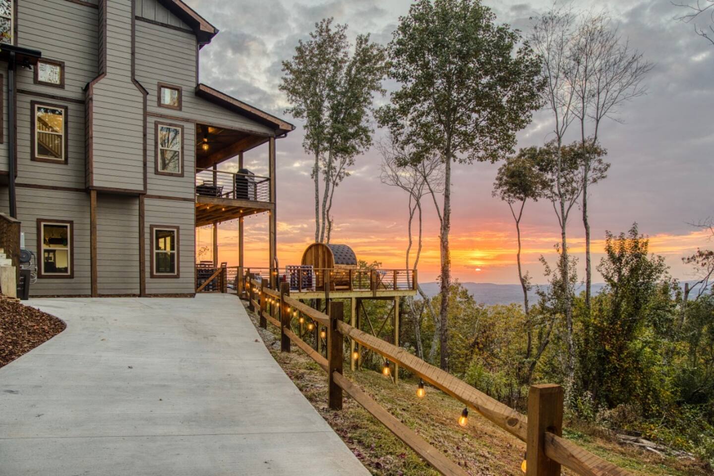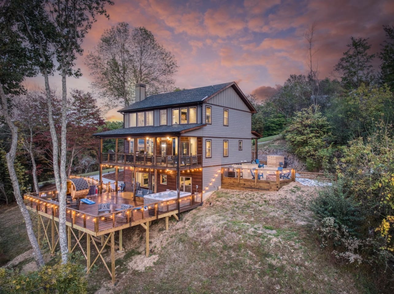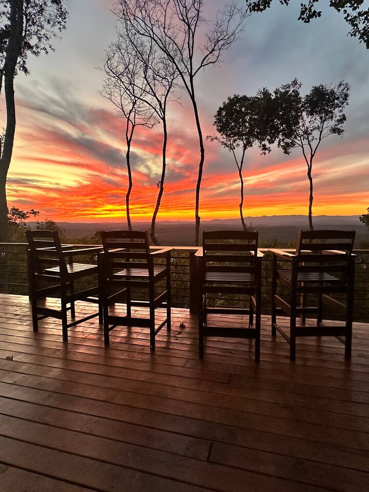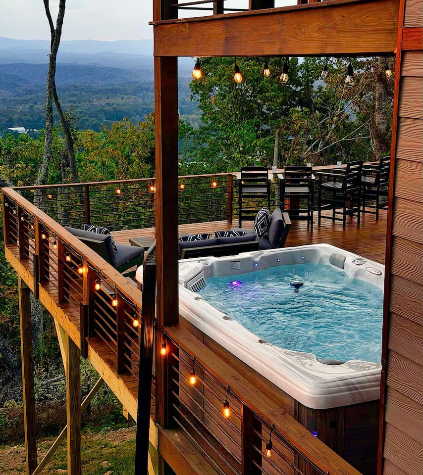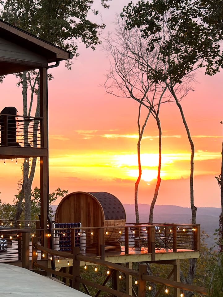 Welcome to Twilight at Talona, a private mountaintop retreat in Ellijay with sweeping mountain and sunset views. This thoughtfully designed cabin blends modern comfort with peaceful seclusion, featuring plush king and queen beds, spacious living areas, a game room, and serene outdoor spaces. Unwind in the 11-person hot tub, relax in the barrel sauna, or enjoy quiet evenings surrounded by nature—just minutes from downtown Ellijay.