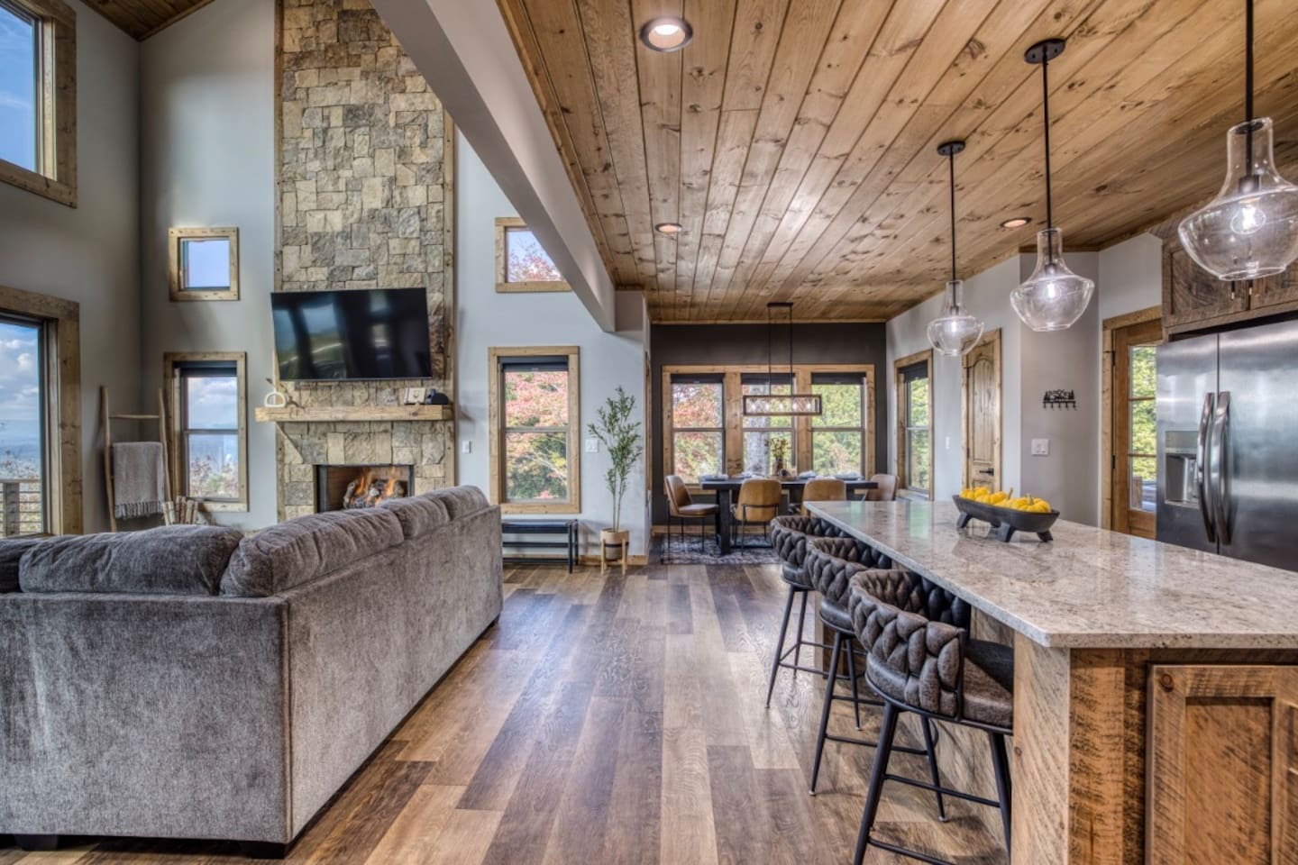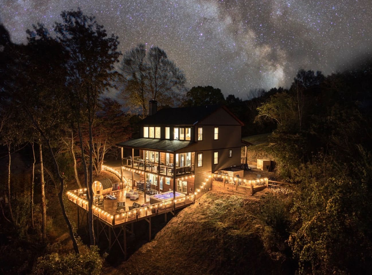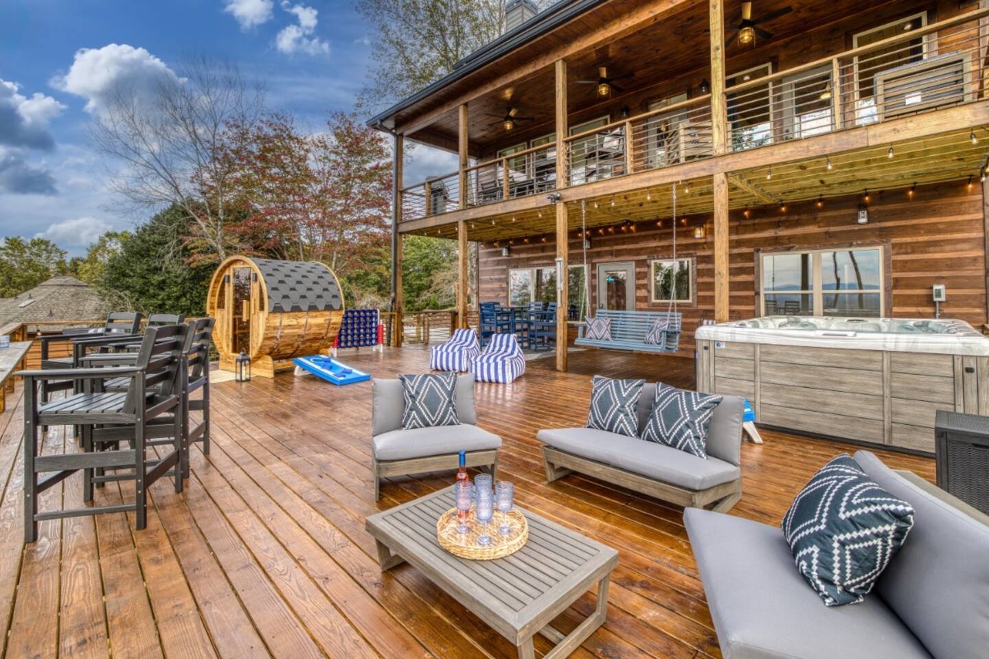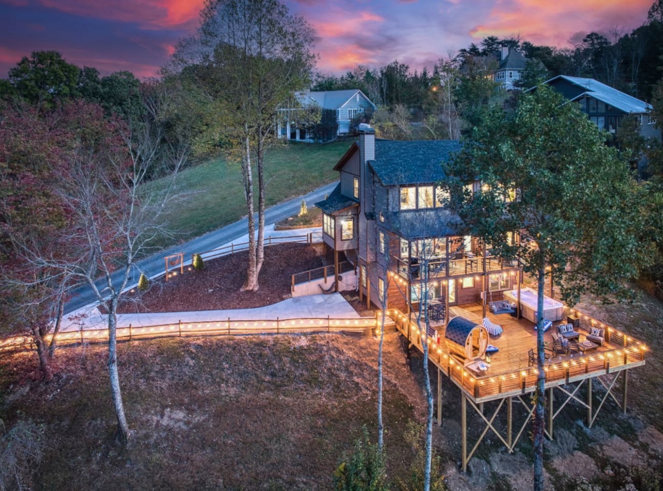 Welcome to Twilight at Talona, a private mountaintop retreat in Ellijay with sweeping mountain and sunset views. This thoughtfully designed cabin blends modern comfort with peaceful seclusion, featuring plush king and queen beds, spacious living areas, a game room, and serene outdoor spaces. Unwind in the 11-person hot tub, relax in the barrel sauna, or enjoy quiet evenings surrounded by nature—just minutes from downtown Ellijay.